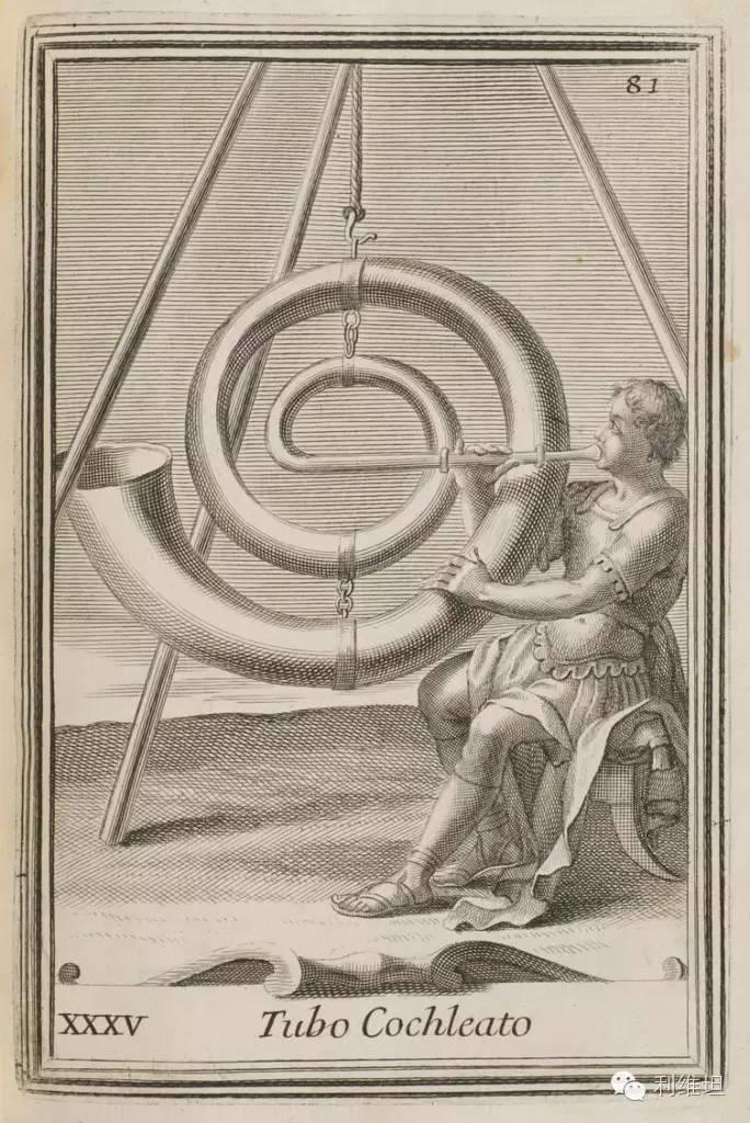 蜗形音管:图片摘自菲利波·波纳尼的Gabinetto Armonico(1723年)