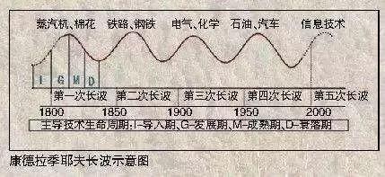 所谓康波,是前苏联经济学家康德拉季耶夫在1925年提出的一个世界经济运动长周期规律,经济学上称为康德拉季耶夫周期。康波理论认为:资本主义世界的经济体系是以45-60年作为一个周期而循环波动的,随着生产和科技的演进,经济趋势通常会在45-60年的时间内发生一次由兴到衰的转变。具体的理论在这里我们就不展开了,大家只要知道这是一个非常经典的宏观经济理论或者说一个分析方法就行了。