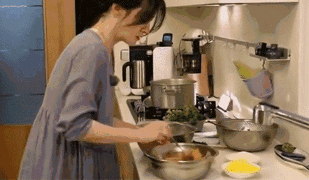她连做个炒饭还要照着教程一步一步操作。