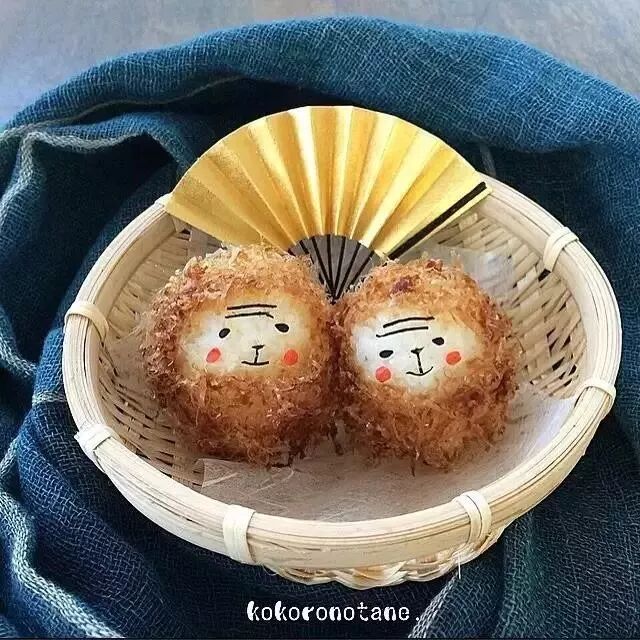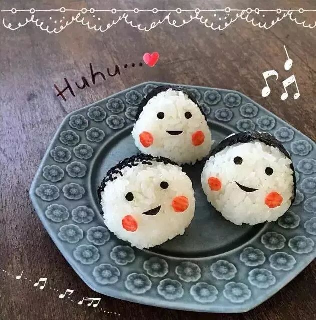 就用海苔把模样画在了饭团上。
