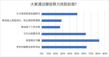 最后,我们发现,在那些对自我了解程度高(4和5分)的人中,大家主要通过,书籍阅读、行业前辈交流以及学生时期的课外活动认识自己。