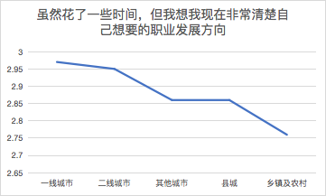 相同年龄的人,来自的地域发达程度,也与找到清楚的职业发展方向呈正相关,也就是说来自越大城市的人,越同意自己已经找到了想要的职业方向。