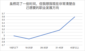 对于职业角色的困惑,也类似地表现出随着年龄渐弱的状态。18岁以下尤其不困惑是因为这个命题在当时还没有进入很多人的思考范畴内——人不会为想不到的事困惑。
