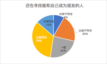 关于友谊,人们都清楚自己想找什么样的朋友(83%的人都至少是比较清楚),但找到的人却没有那么多,47%-71%的人还在寻找能和自己做朋友的人。