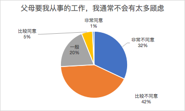 这是一代不会仅仅为了父母就决定自己职业和朋友选择的人。超过74%的人不认同“父母要我从事的工作,我通常不会有太多顾虑“,超过68%的人不认同“父母比我更懂得要交什么样的朋友”。