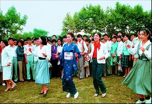 天安门广场聚集了中国青年10万人和3000名日本青年,又是跳舞,又是放烟火,像共同庆祝一个盛大的节日。当时的场面现在仍然历历在目。