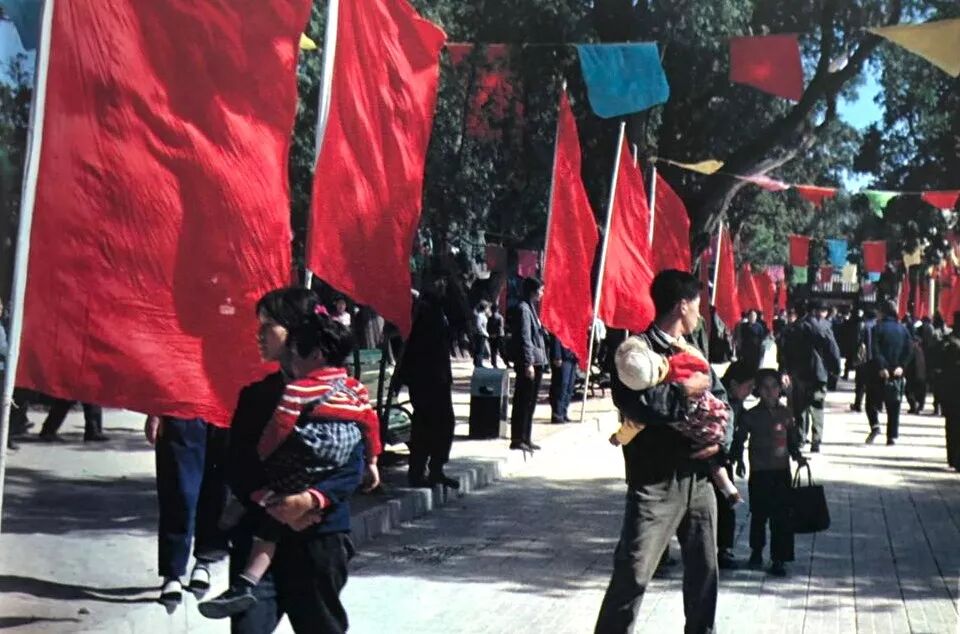 这一年,北京街头的人们还穿着蓝色和深绿色的衣服,自行车是城市出行的主要交通工具,街道上偶尔还有马车驶过,马路上留下一滩动物粪便。