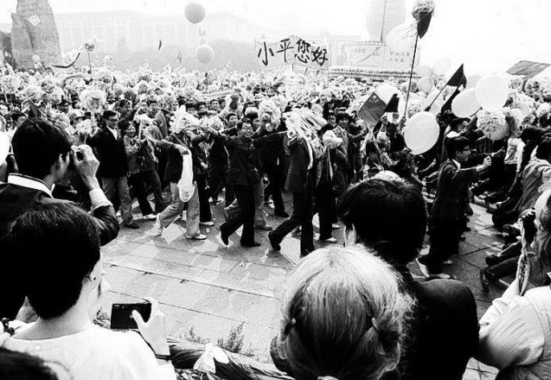 北大生物系学生在游行中打出的“小平您好”横幅,成为珍贵的历史记忆
