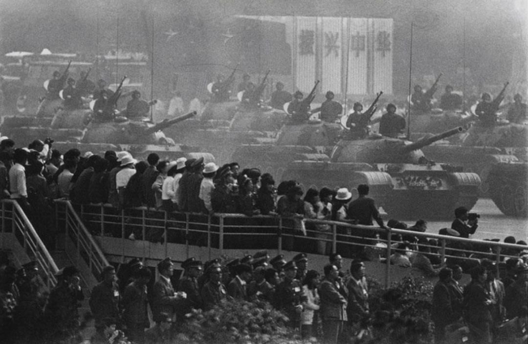 贺延光当时很年轻,本来没有机会拍摄阅兵式。但由于他是随团采访日本青年访华团的记者,才有机会站到了劳动人民文化宫正门南侧的观礼台上,拍下了那张将来享誉世界的照片。