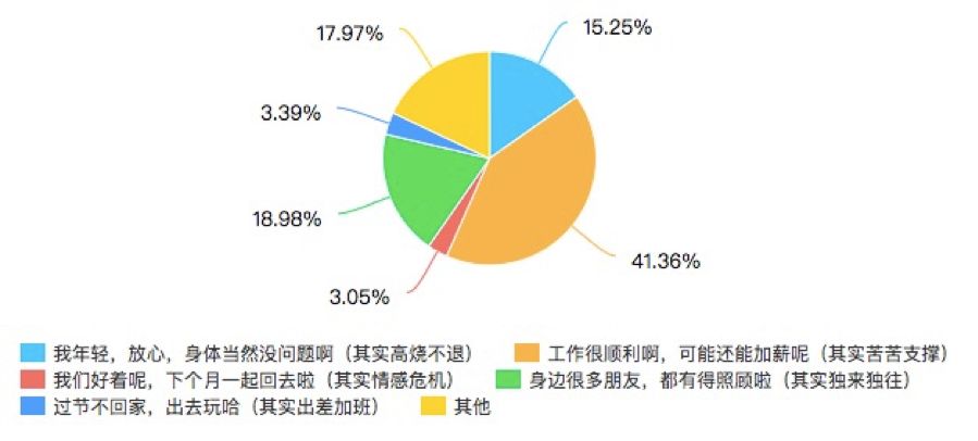 在《北上广漂们,你是怎样对父母假装说“过得很好”的?》的征集中,41.36%的人选择了工作上的假装。
